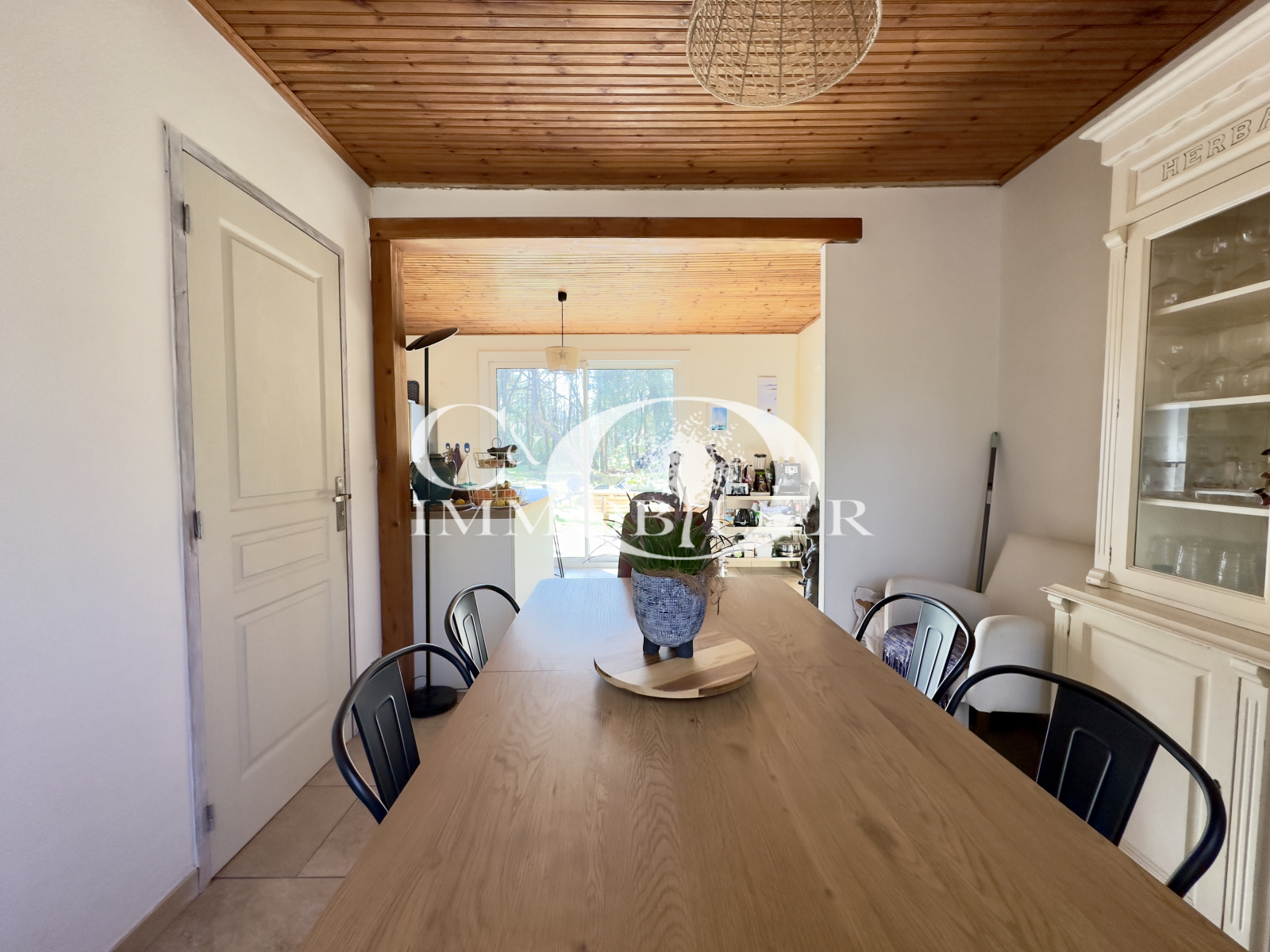 - Nichée dans un environnement boisé et à 10 minutes de la plage, charmante maison de plain-pied comprenant : un espace de vie avec cuisine aménagée et équipée, salon et une salle à manger. Nous retrouvons ensuite une salle d’eau avec wc et un dégagement desservant 2 chambres. Le tout sur un terrain boisé de 1843 m² avec une terrasse couverte et un garage de 20 m² au sol.