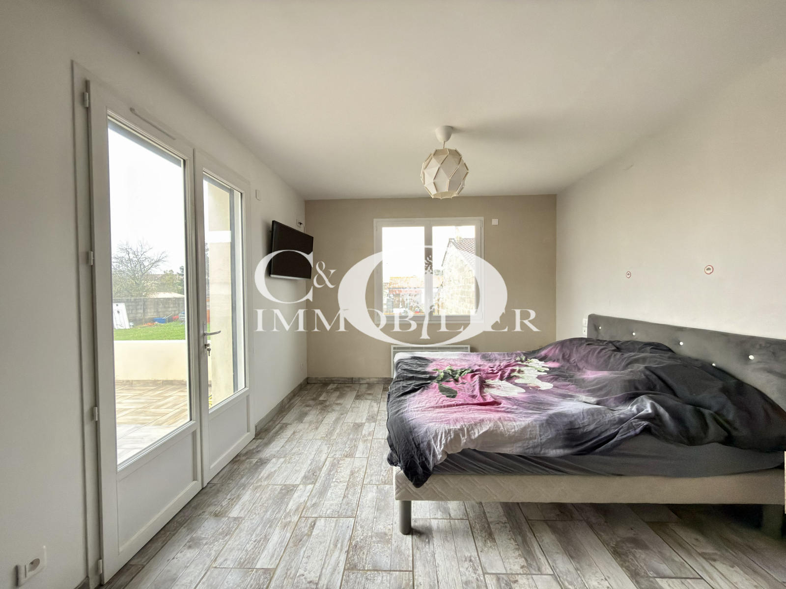 En annexes, vous profiterez d’un garage avec faux grenier et porte manuelle. À l’extérieur, la maison dispose d’une terrasse carrelée de 59 m² et d’un jardin clos sur chaque côté. Le tout sur une parcelle de 898 m².