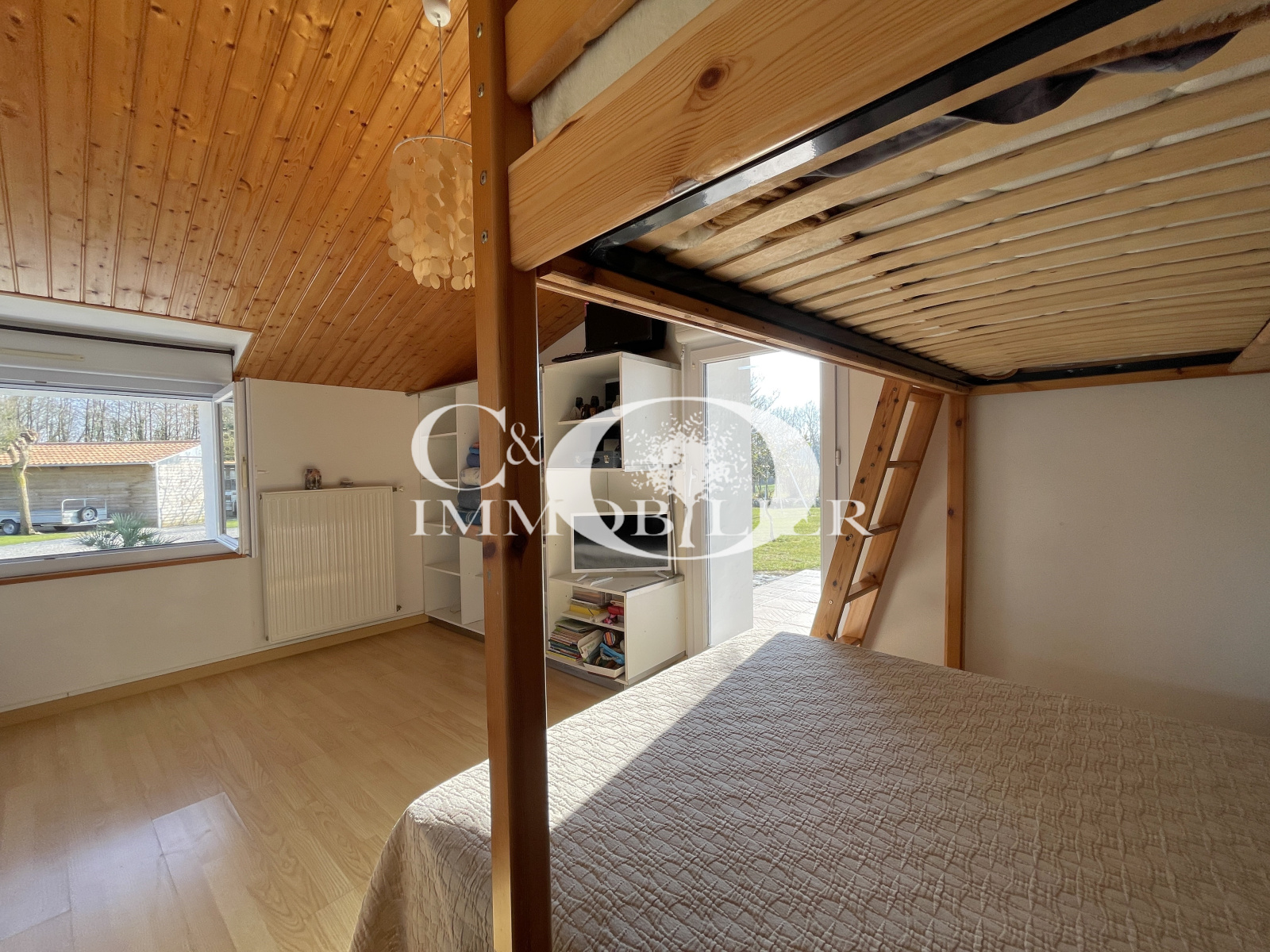 A l'étage une mezzanine, une chambre, une salle d'eau avec wc et un espace dressing.