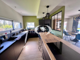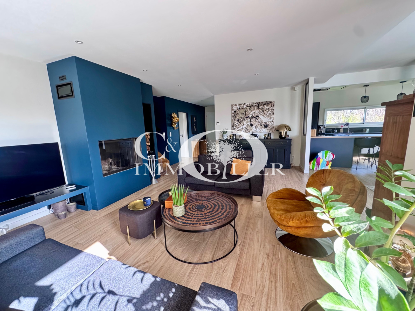 - Une magnifique pièce de vie de 65 m² baignée de lumière, comprenant un salon avec cheminée, un espace salle à manger et une cuisine semi-ouverte aménagée et équipée,