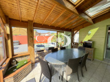 Dès l’entrée, une véranda lumineuse de 14 m² donne le ton. L’intérieur s’articule autour d’un vaste espace de vie de plus de 35 m², d’une cuisine moderne et fonctionnelle, et d’une suite parentale avec dressing. Buanderie, salle d’eau et WC indépendant complètent le rez-de-chaussée.