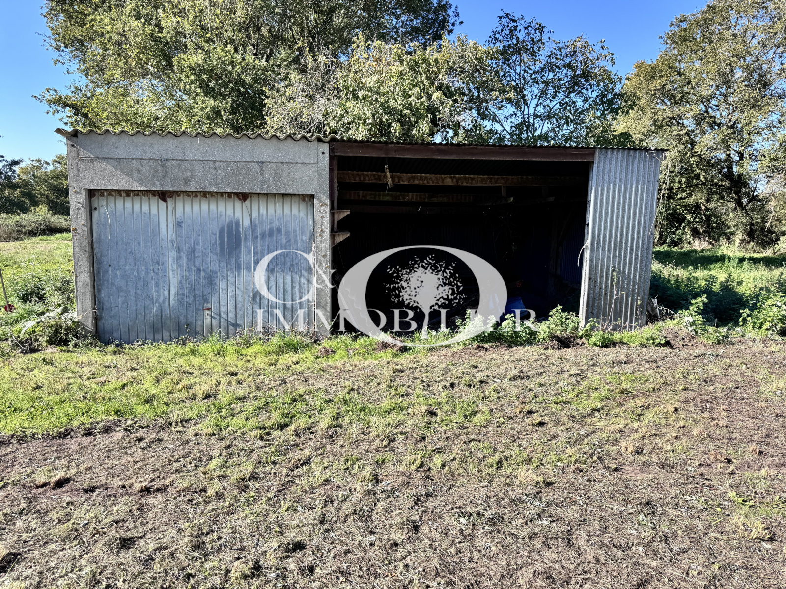 Le tout sur un terrain de 764 m² avec deux dépendances et un garage ainsi qu'un terrain de 1 195 m² de l'autre côté du chemin communal avec un puits.