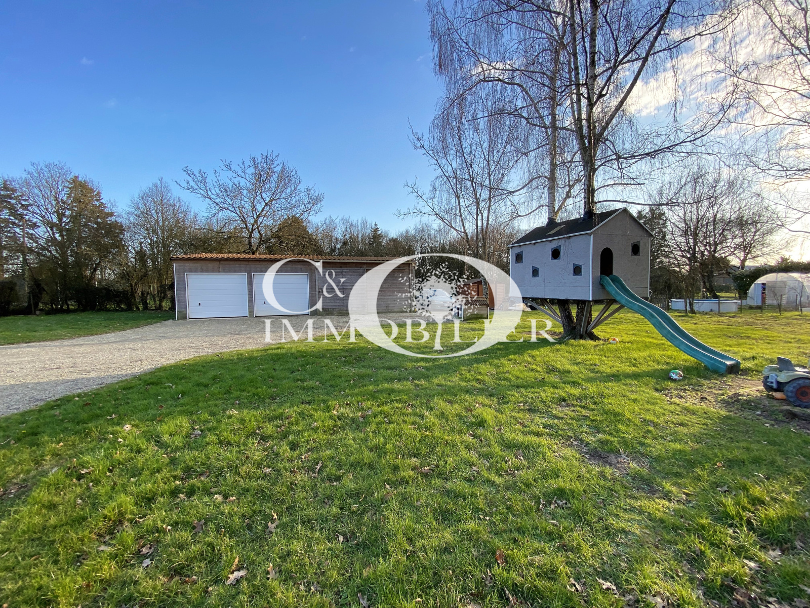 Le tout sur un terrain clos et arboré de 2 610 m² environ avec une terrasse, un garage double et une serre.