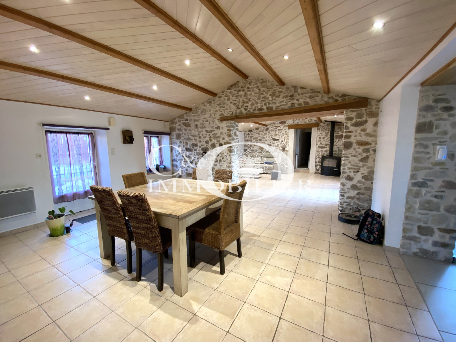 - Située en village, belle rénovation et grands espaces pour cette maison de plain pied comprenant : un séjour, un salon avec poêle à buches, deux chambres dont une avec sa salle d'eau, un wc, un espace buanderie, un petit débarras et un cellier.