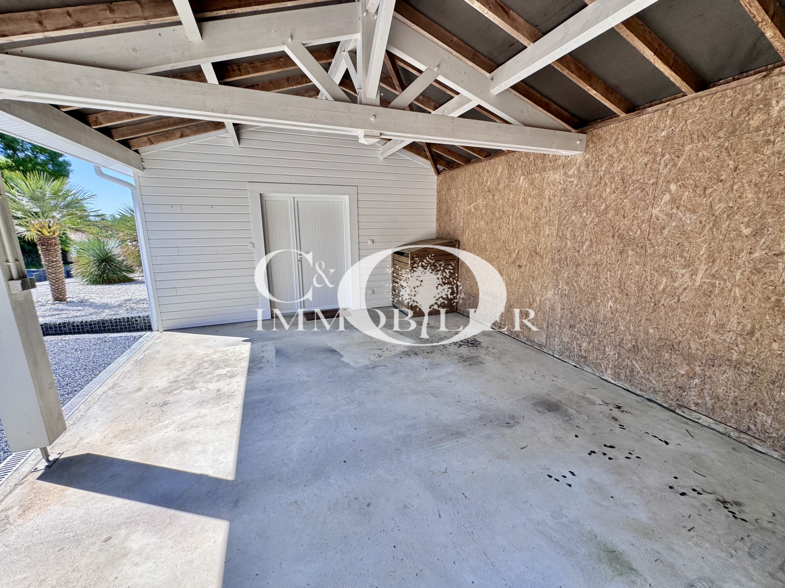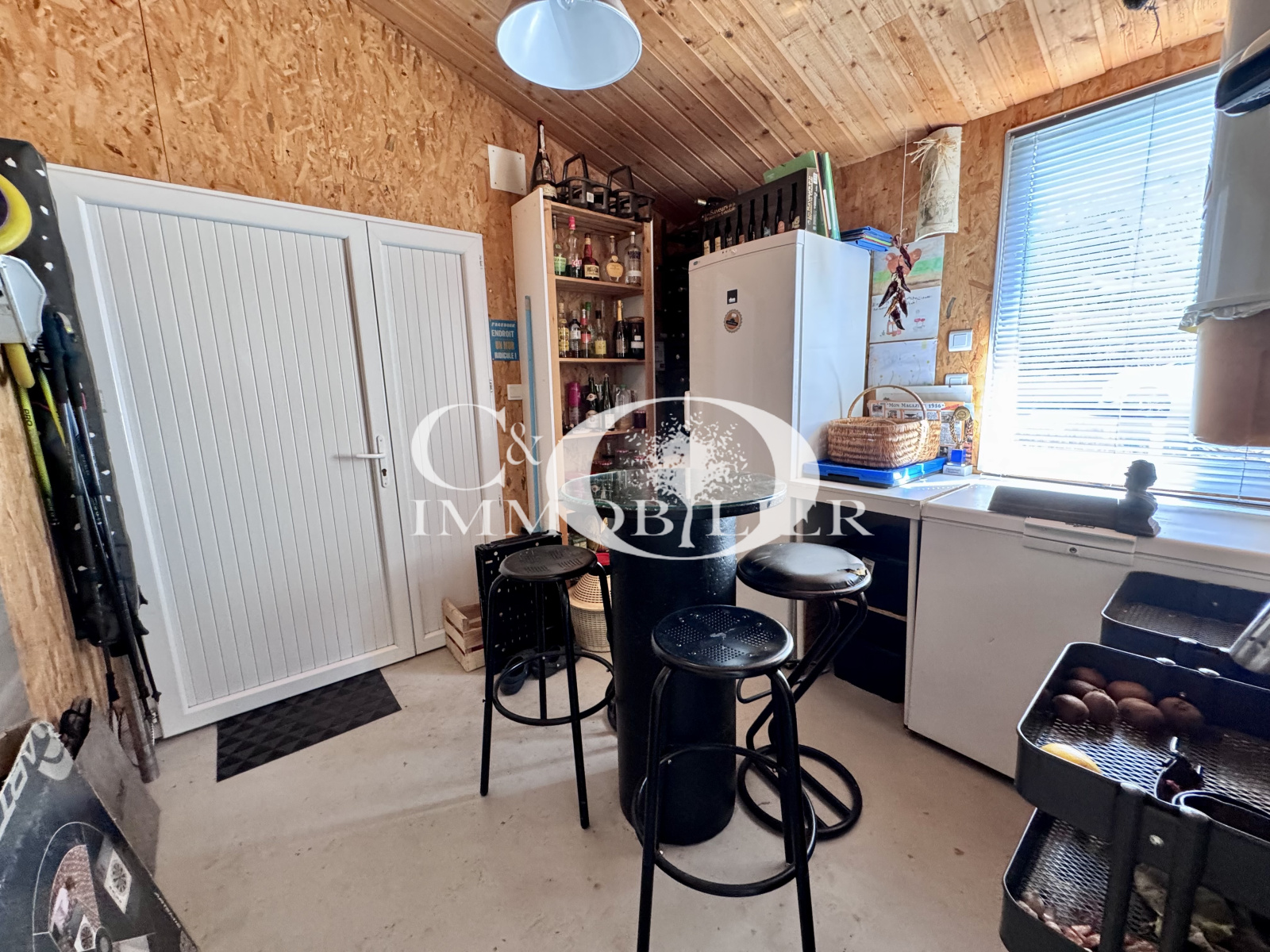 Le tout sur un terrain de 1052 m² avec un grand abri pour 2 véhicules, un chalet bois et un abri.