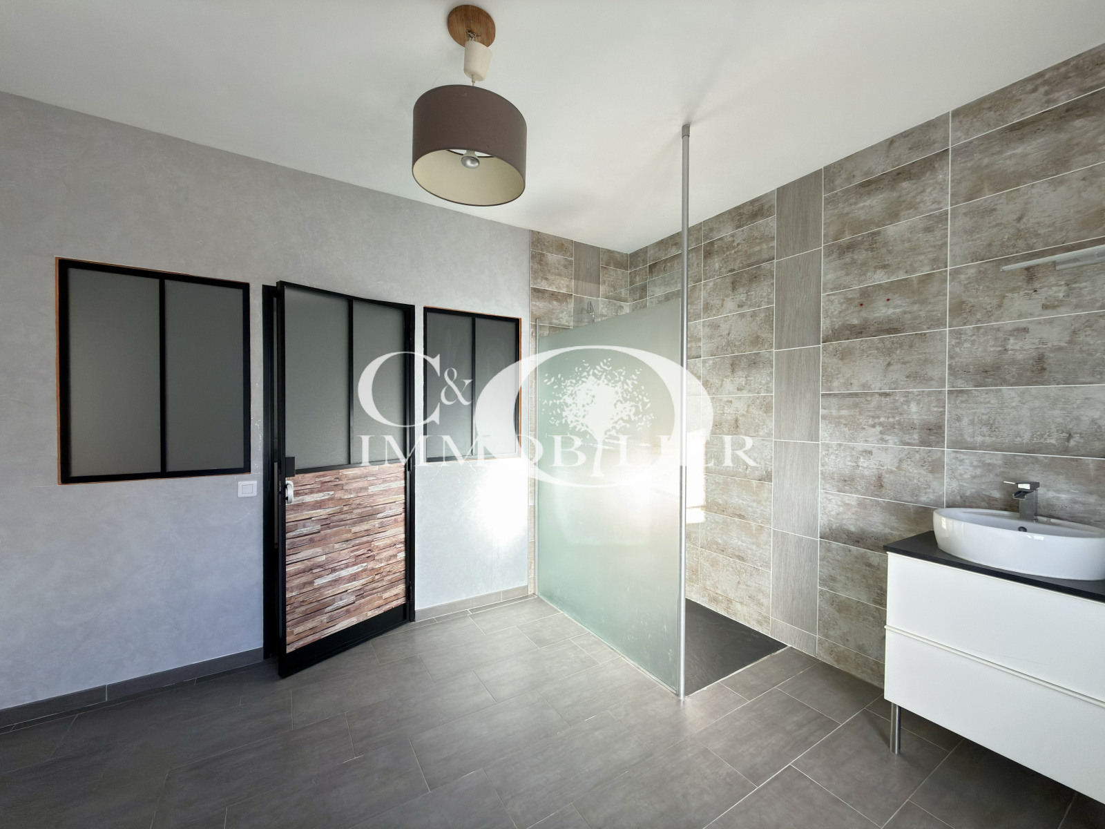 Le jardin arboré de 406 m², le garage, l’atelier et la dépendance de 40 m² offrent de beaux espaces complémentaires. Le terrain est clos de murs en pierre, sans vis-à-vis. Maison bien entretenue, sans gros travaux à prévoir.