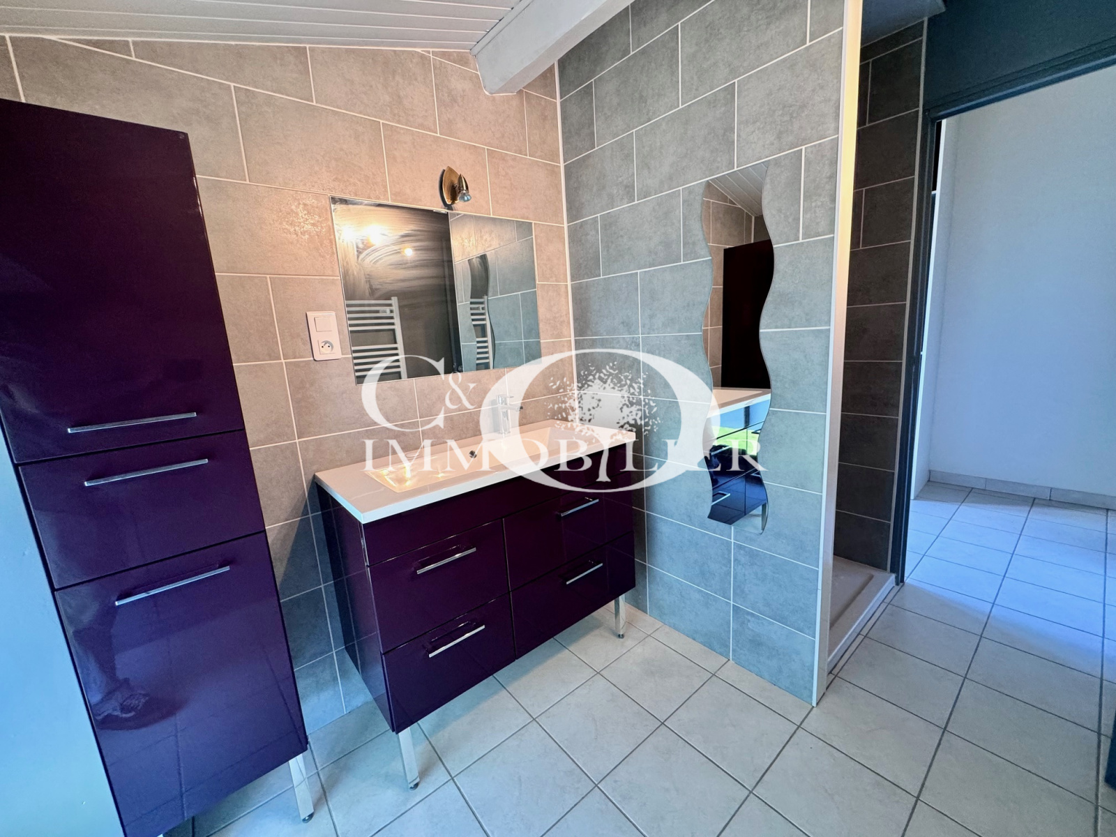 Le tout sur une parcelle de 843 m² environ avec un grand garage et un abri fermé.