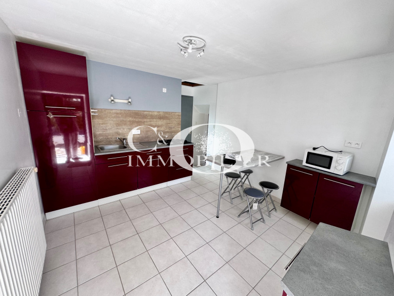 Situé au calme d'un village, maison pierres rénovée comprenant : une cuisine meublée avec plaques de cuisson gaz, un espace buanderie-arrière-cuisine, un séjour avec une cheminée, un wc, un dégagement avec placard, une salle d'eau et une chambre.
