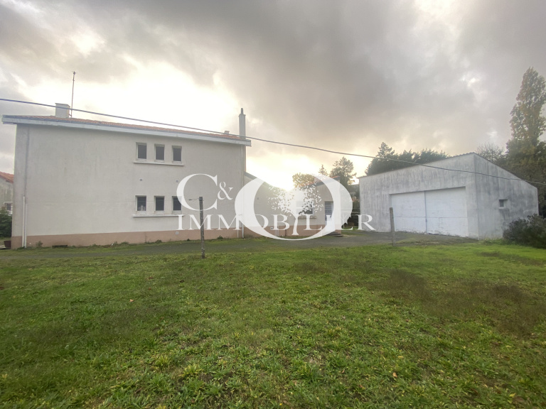 A l'extérieur : Un grand garage d'environ 65 m² (avec un double portail de 7 m de large et 3.40 m de haut) dont une cave et un grenier, un abri bois de 10 m².