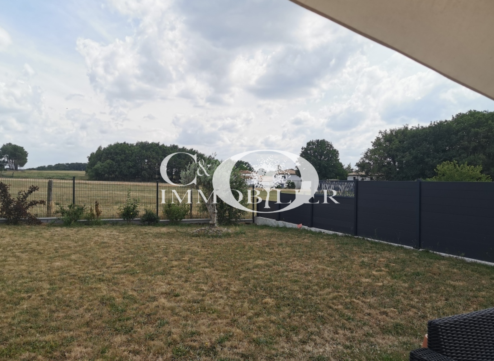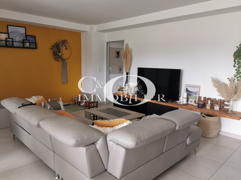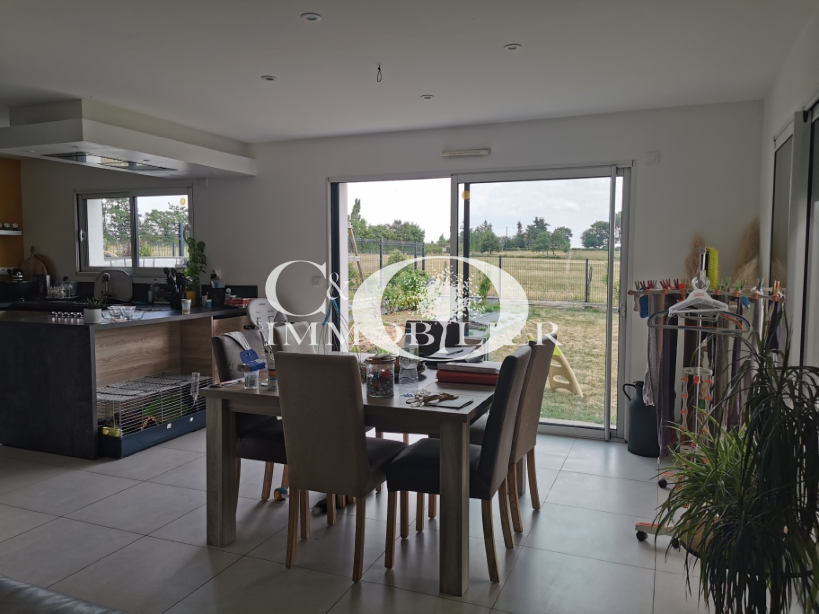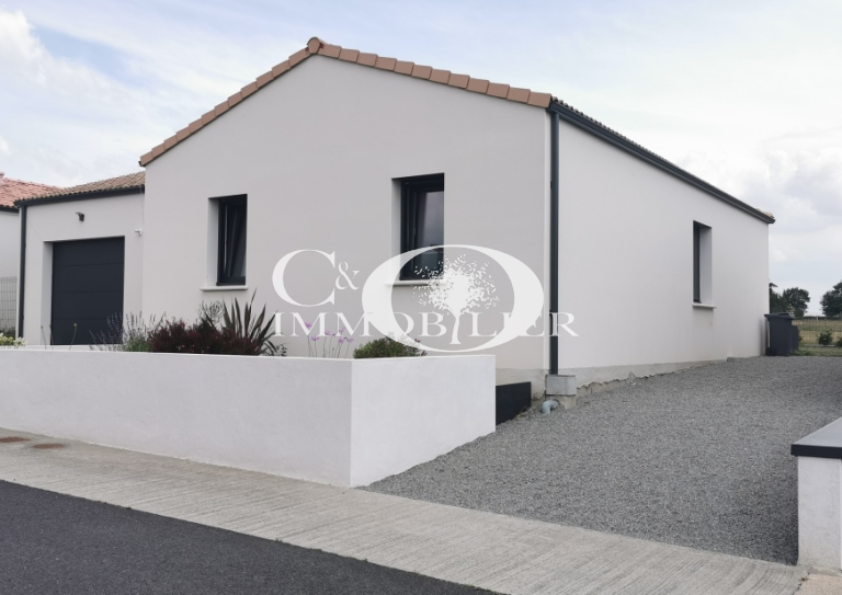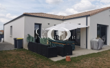 VENDU EN EXCLUSIVITE : bourg, idéale maison récente de plain pied comprenant une entrée avec placard, grande et jolie pièce de vie d'environ 46 m² avec sa cuisine AE ouverte donnant sur une terrasse exposée SUD OUEST, ainsi que son bureau, cellier et garage.