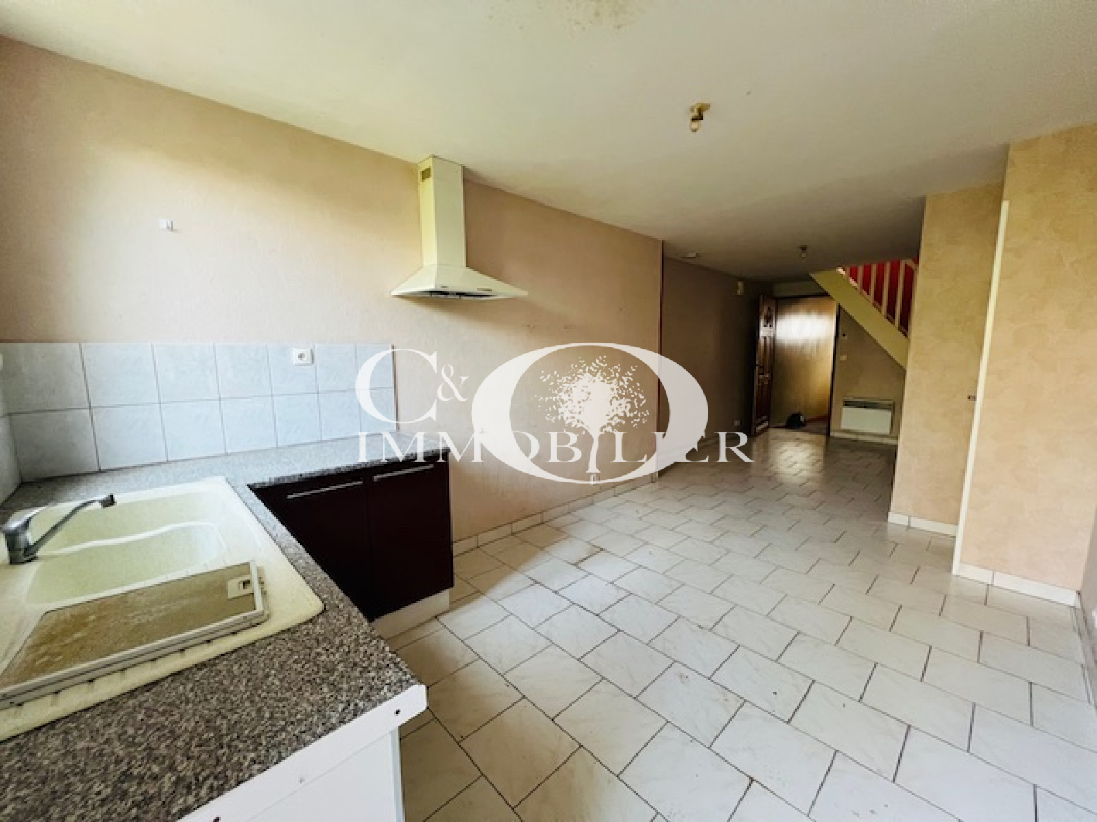 EXCLUSIVITÉ : Située dans le centre bourg, maison sur deux niveaux composée au rez-de-chaussée : d'un couloir (6 m²) avec buanderie (4m²), une pièce principale avec coin cuisine (21 m²) et placard de rangement (1.2 m²), un wc (1.5 m²). A l'étage, nous retrouvons une chambre en mezzanine (11 m²), et une salle d'eau (3.5 m²). Le tout sur un terrain clos d'environ 110m² avec un coin préau. Prix: 86 400€ dont 8% TTC d'honoraires à la charge de l'acquéreur