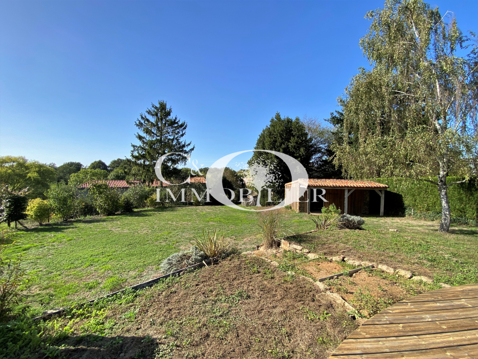 - A l’extérieur, un terrain enitèrement clos et très bien entretenu d’environ 1047 m² avec un garage.