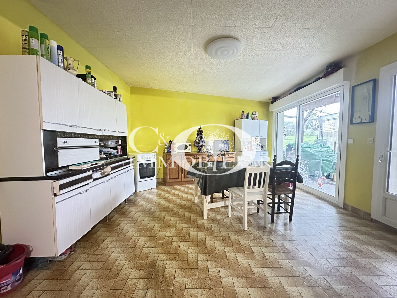 - Située en village maison sur deux niveaux comprenant au rez-de-chaussée : Un espace salon, 2 chambres, une cuisine aménagée ouverte sur la salle à manger, une salle de bains, espace lingerie et un wc. A l’étage nous retrouvons un palier desservant 3 chambres spacieuses 14 à 20 m². Le tout sur un terrain de 575 m² environ avec un puits et une véranda. Rafraichissement, finitions et mise en conformité de l'assainissement à prévoir.
