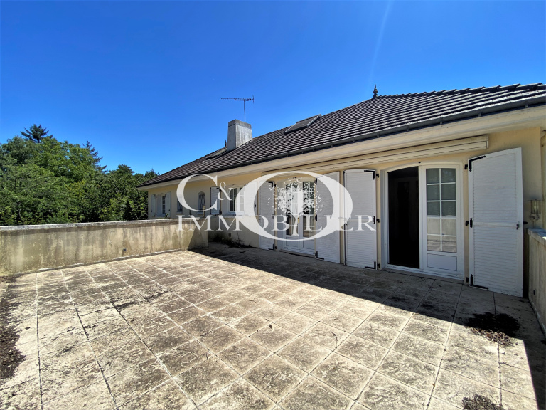 Située à proximité du centre bourg, maison d’habitation à rafraichir comprenant une entrée, un espace salon, une cuisine aménagée donnant sur la terrasse, 3 chambres, un bureau, wc et une salle de bains avec douche. La propriété possède également un large sous sol de 146 m² environ regroupant : chaufferie, 2 garages et des pièces aménageables. Le tout sur un terrain de 2 694 m² environ avec un puits et une petite dépendance non attenante à la maison.