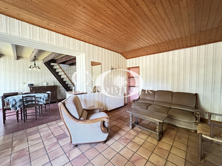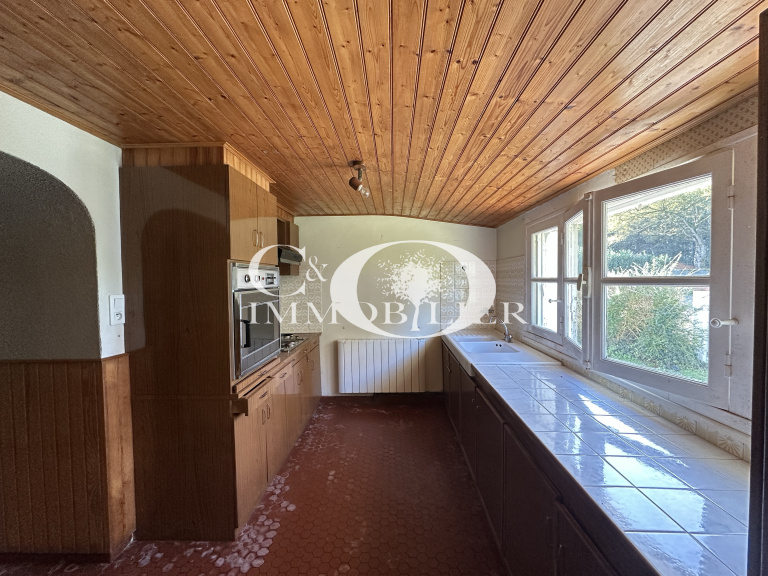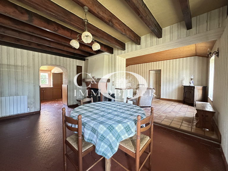 - Située en village maison sur deux niveaux à rénover. Au rez-de-chaussée, vous trouverez un espace cuisine, wc séparé, salle d'eau, salle à manger avec cheminée, salon, une chambre, bureau et débarras. À l'étage, une chambre supplémentaire. Le tout sur un vaste terrain de 766 m², bénéficiant d'une alimentation en eau uniquement par un puits. Quelques travaux à prévoir (électricité, mise en conformité de l'assainissement...).