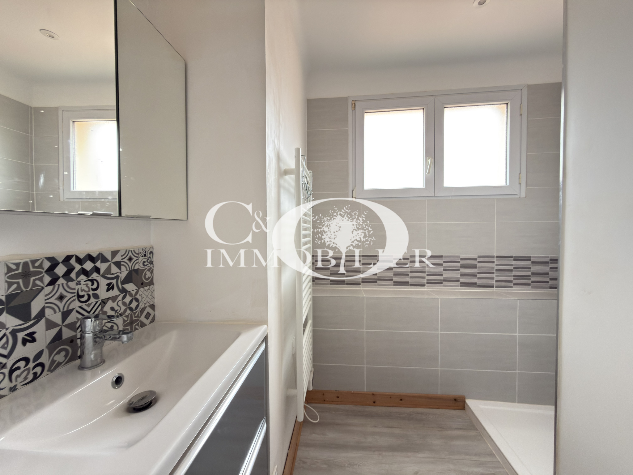 À l’étage, un palier dessert trois chambres, un WC et une salle d’eau. Une terrasse couverte vient compléter l’ensemble. Le bien ne dispose pas de garage ni de terrain.
