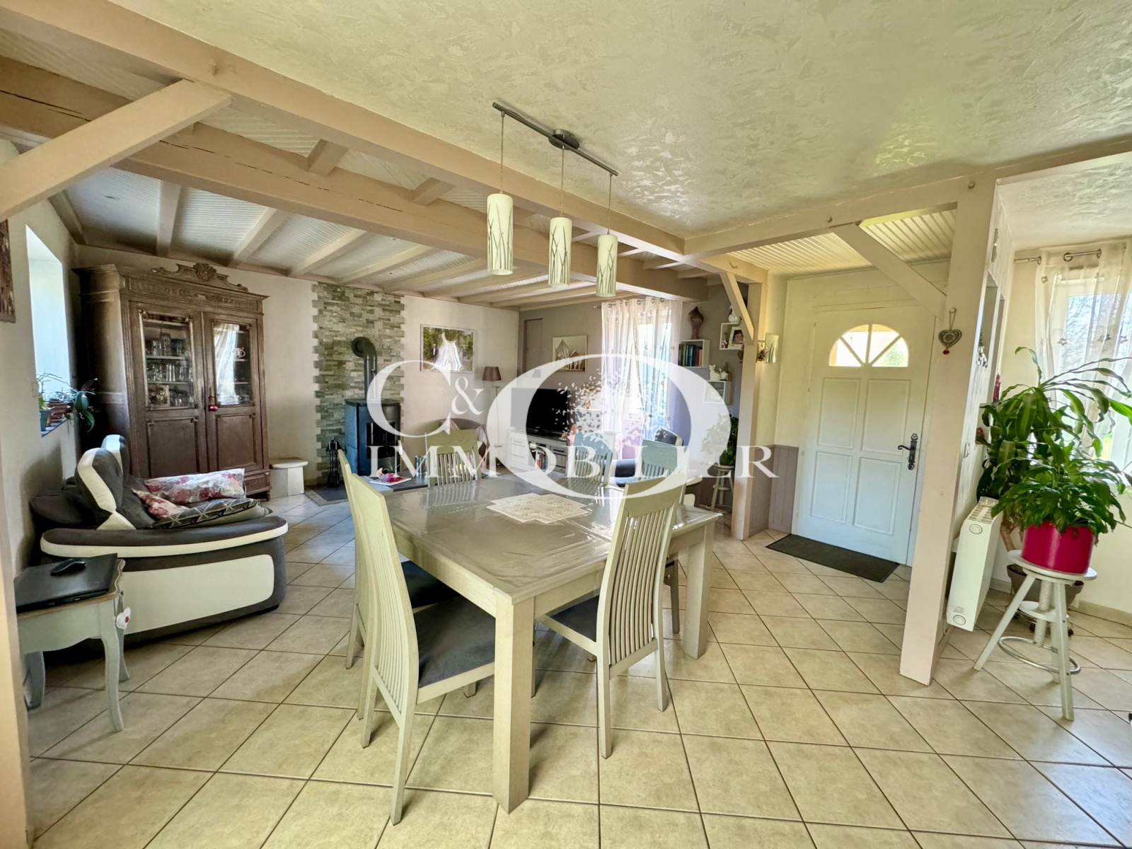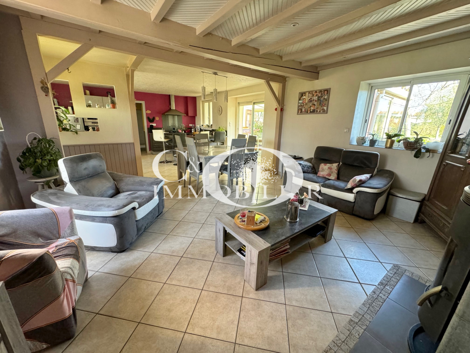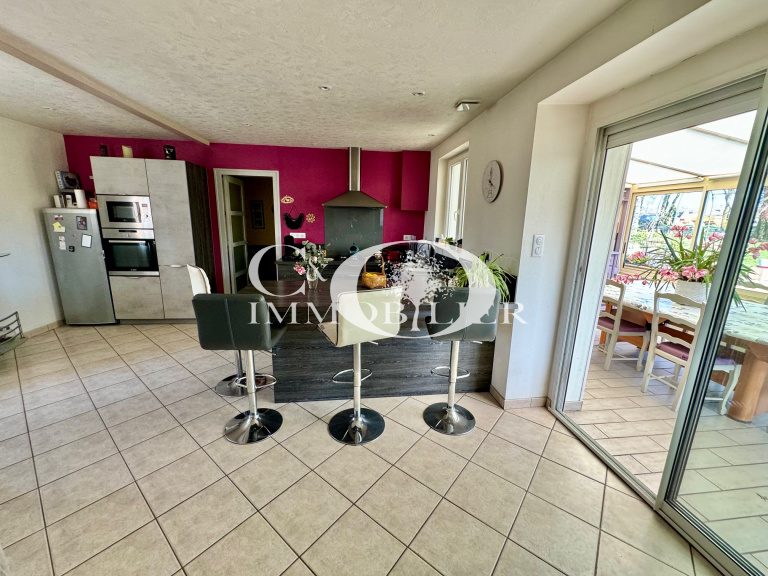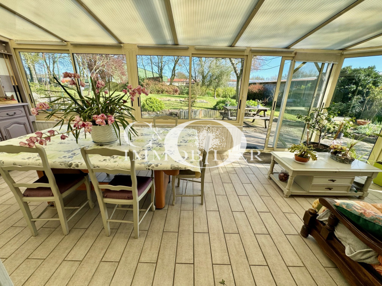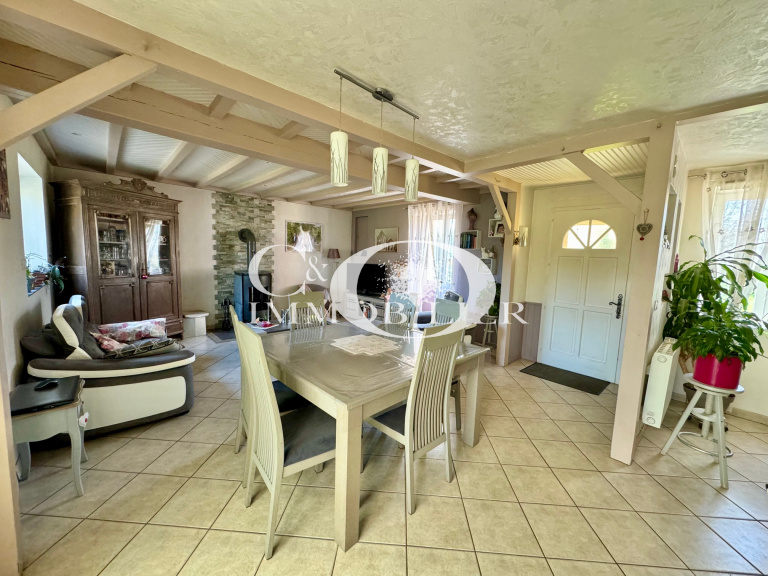 * SEULEMENT CHEZ CO IMMOBILIER * Saint Étienne de Mer Morte, vous recherchez une maison de plain pied à 10min de Machecoul, ne manquez pas cette opportunité ! Venez profiter d'un salon séjour lumineux avec un poêle à bois, d'un espace cuisine aménagée et équipée (hotte, plaque à gaz, four, micro-ondes, lave-vaisselle) ouvrant sur une belle véranda de 19m² environ exposée Sud Est avec vu sur son bel écrin de verdure. Coté nuit, venez découvrir une salle de bains équipée d'une douche à l'Italienne et une baignoire d'angle, deux chambres lumineuses avec vu sur le jardin, un bureau et un WC séparé. Le tout sur un terrain de 2235m² avec grand garage attenant à la maison et des dépendances offrant un espace extérieur agréable pour des moments de détente en famille ou entre amis.