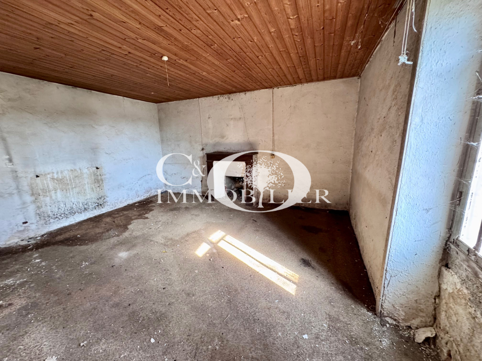 Maison pierres à rénover entièrement comprenant : un séjour, une partie cuisine et une chambre ainsi qu'une dépendance attenante de 30 m².
