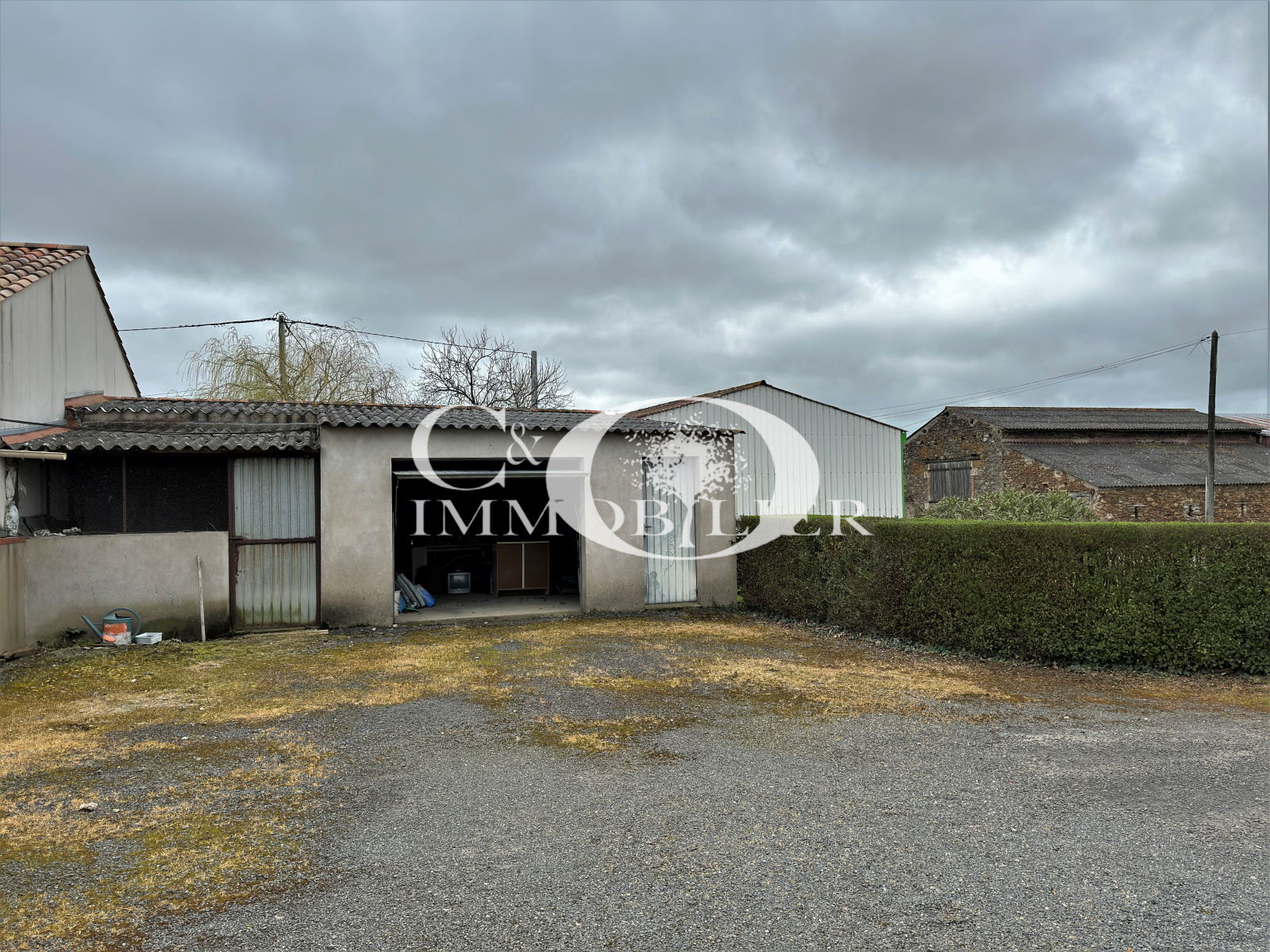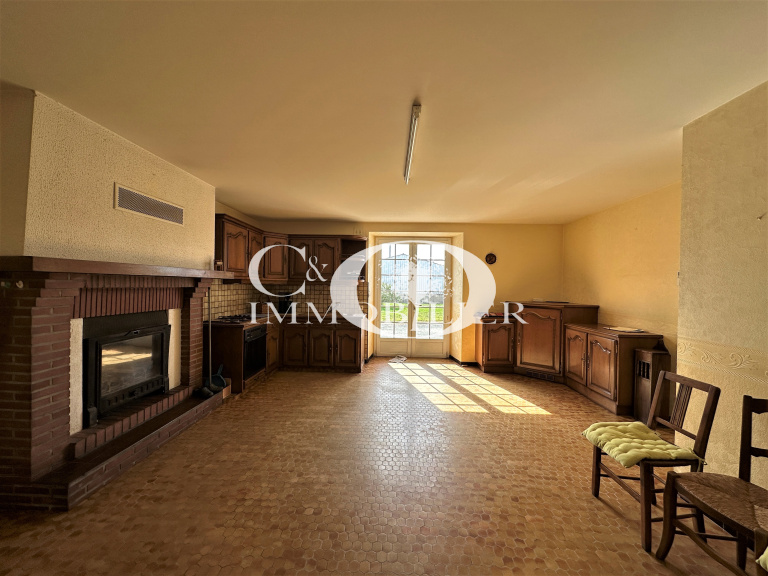 - A savoir : Chauffage électrique et insert bois, toiture en fibro-ciment, électricité à revoir et rafraichissement des pièces à prévoir.