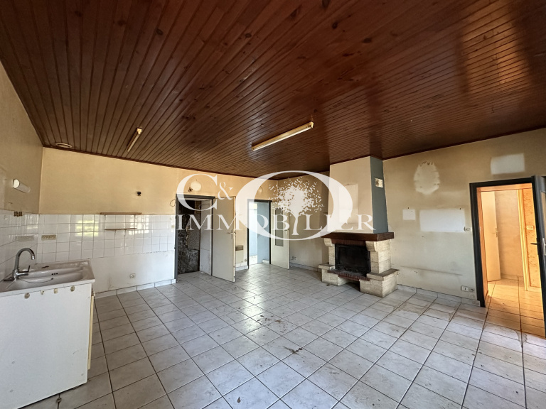 Située en village, maison d'habitation à rénover entièrement comprenant : un espace salon/séjour et cuisine ouverte avec cheminée, une salle d'eau, wc, 2 chambres et un bureau. Le bien dispose également de 100m² environ de dépendances attenantes. Le tout sur une parcelle cadastrale de 310 m². Le bien ne dispose pas de jardin. Mise en conformité de l'assainissement à prévoir.