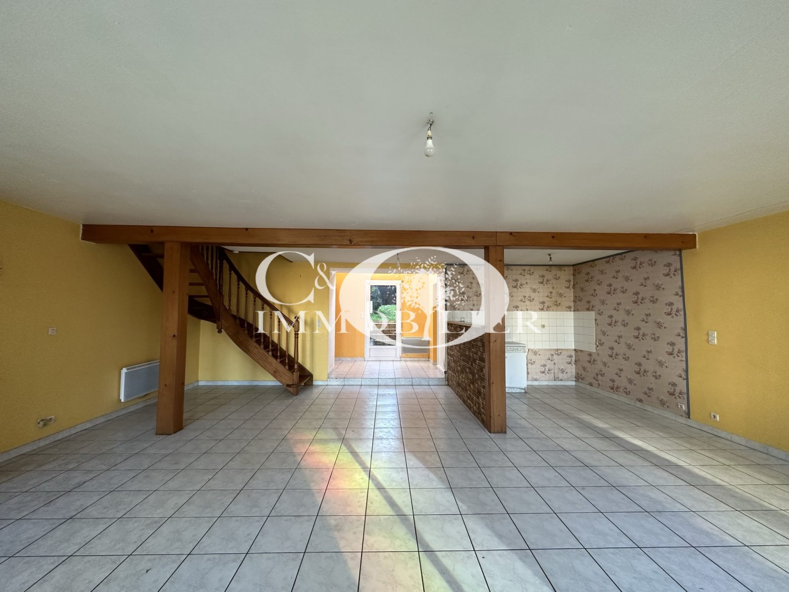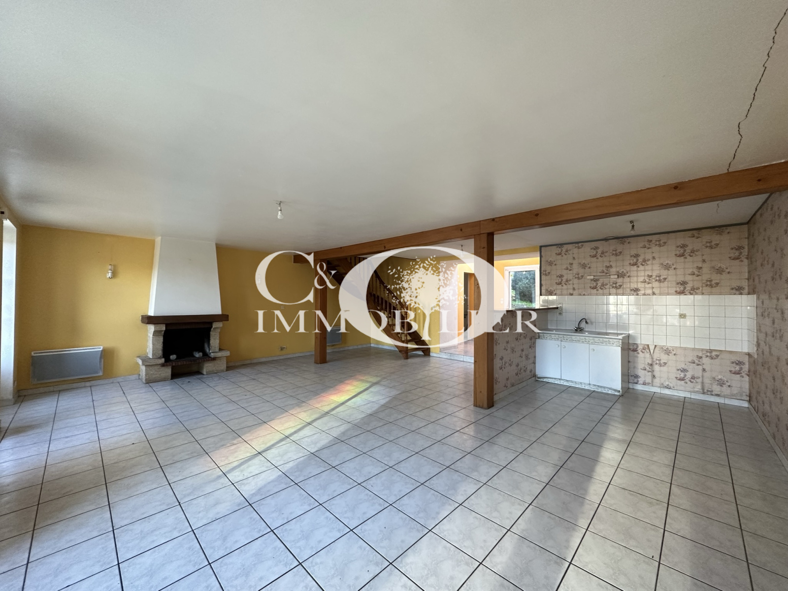 Située dans le bourg, venez découvrir cette maison comprenant au rdc : une lumineuse pièce de vie avec sa cheminée, une cuisine ouverte, un cellier et un WC séparé.