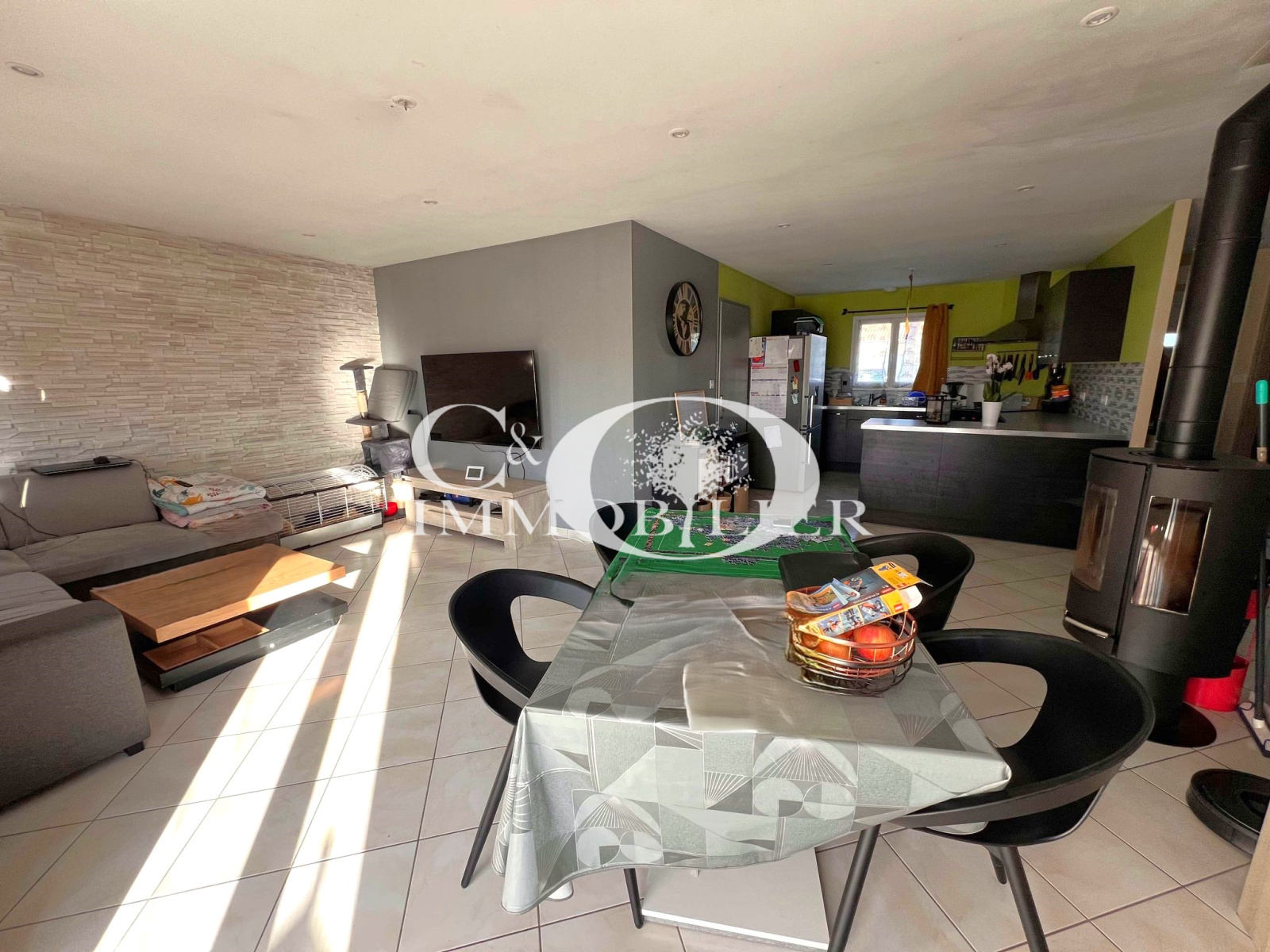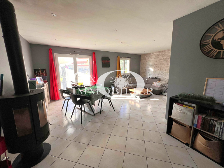 Situé dans le bourg, au calme d'une impasse venez découvrir ce joli plain-pied de 2012 comprenant : une entrée, un salon-séjour avec son poêle à bois, une cuisine ouverte aménagée et semi équipée et un cellier.