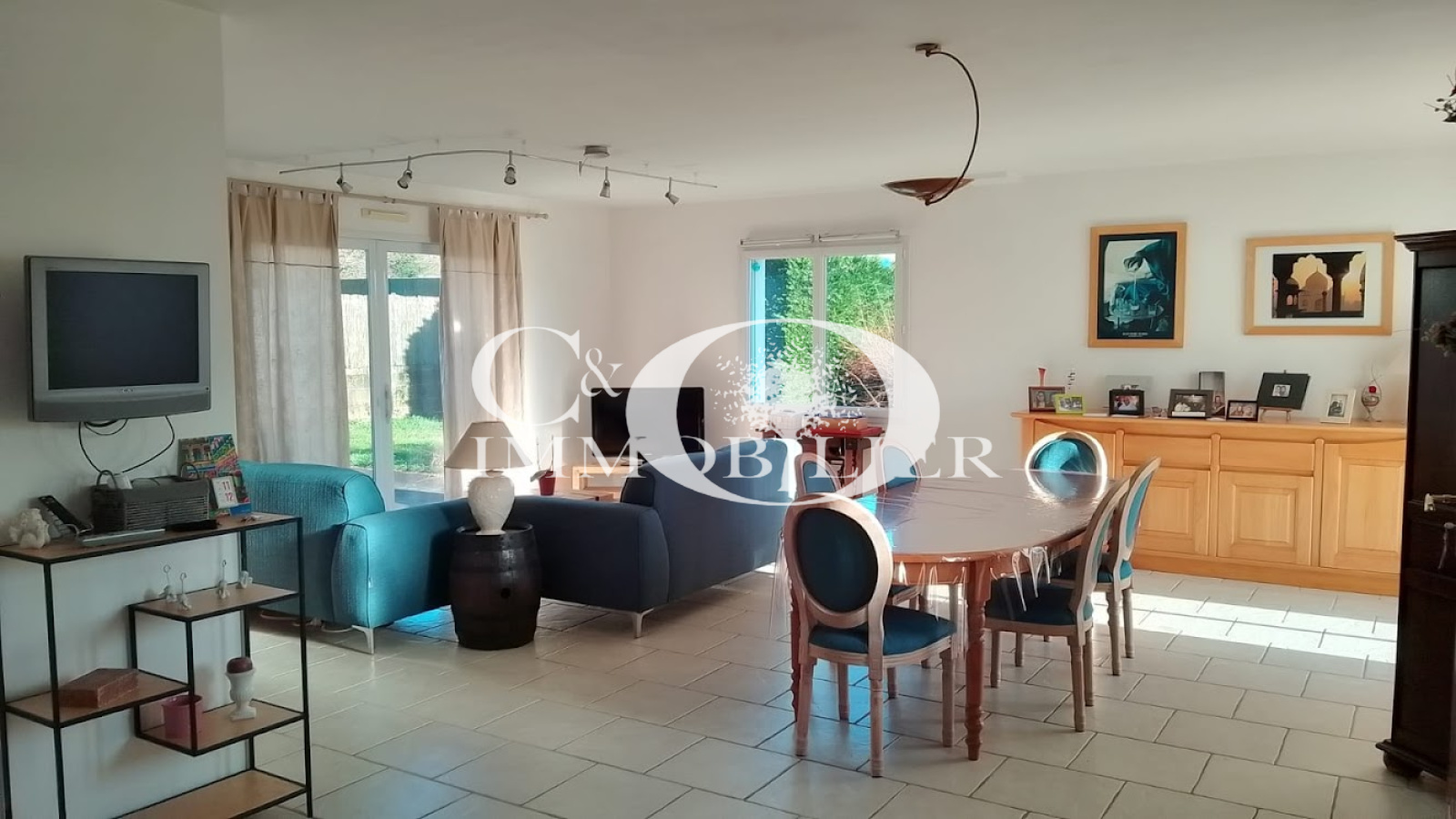 NOUVEAUTÉ CO IMMOBILIER - EXCLUSIVITÉ : A Fresnay-enRetz, venez découvrir cette maison de 2009 de plain-pied située à 5 mn de Machecoul-St-Même et 15mn du bord de mer. Elle se compose d'une grande pièce de vie très lumineuse ouverte sur une cuisine aménagée et équipée, un cellier, un wc, une salle d'eau, 3 chambres et un double garage avec faux grenier. Le tout sur une parcelle d'environ 900 m².