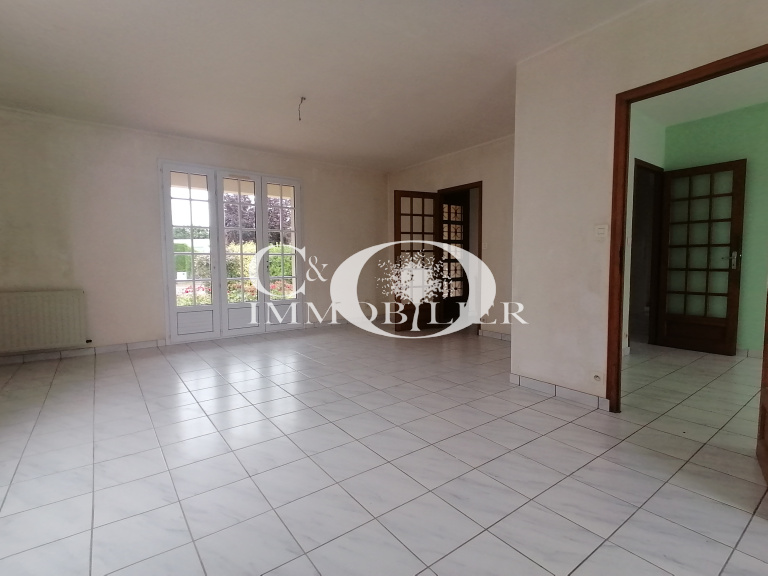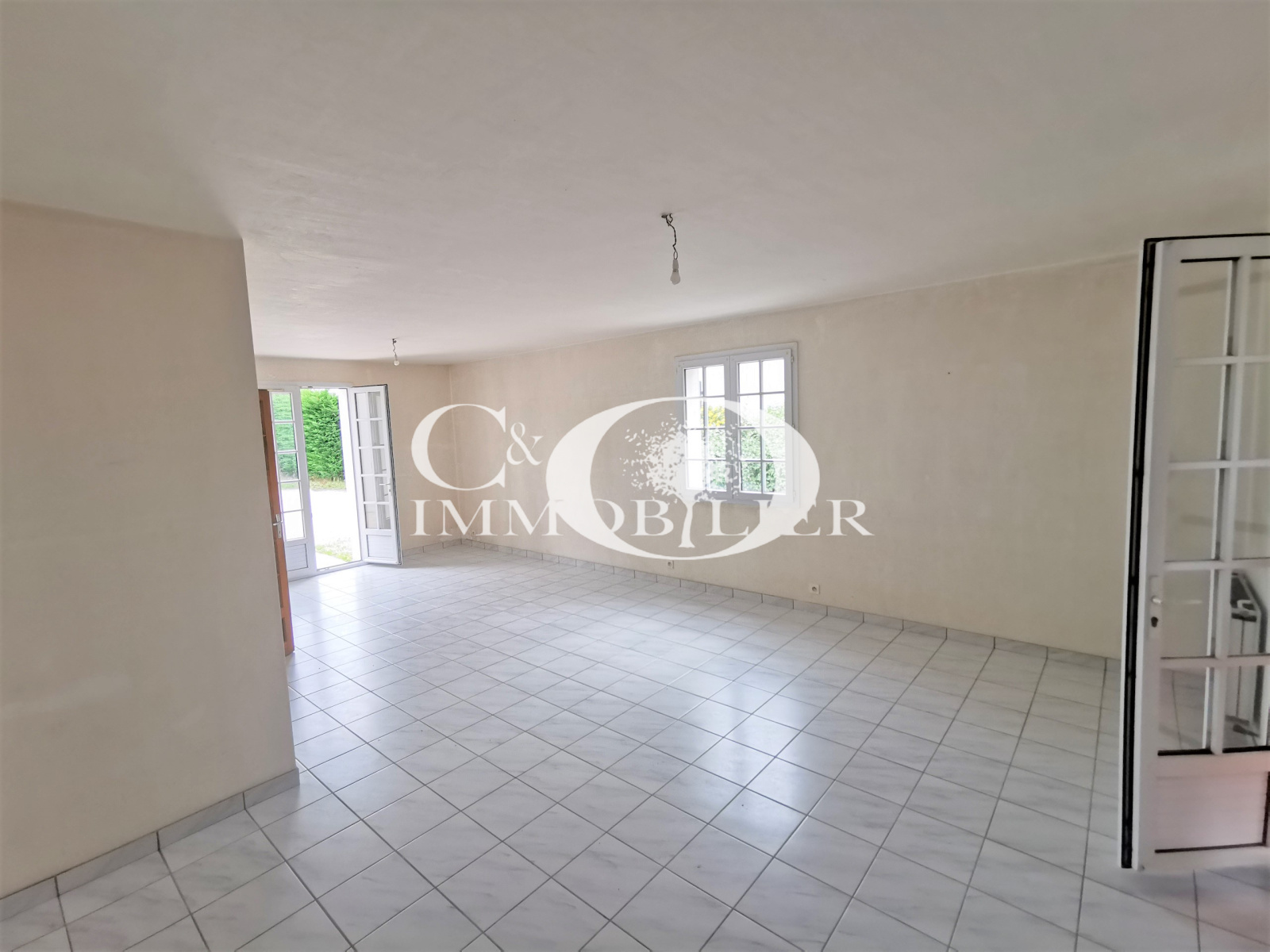 EXCLUSIVITE CO IMMOBILIER pour cette maison de plain pied des années 90 comprenant un hall d'entrée, un grand salon séjour lumineux et une cuisine séparée (avec possibilité d'ouverture pour un ensemble de 56 m²), une arrière cuisine et un double garage.