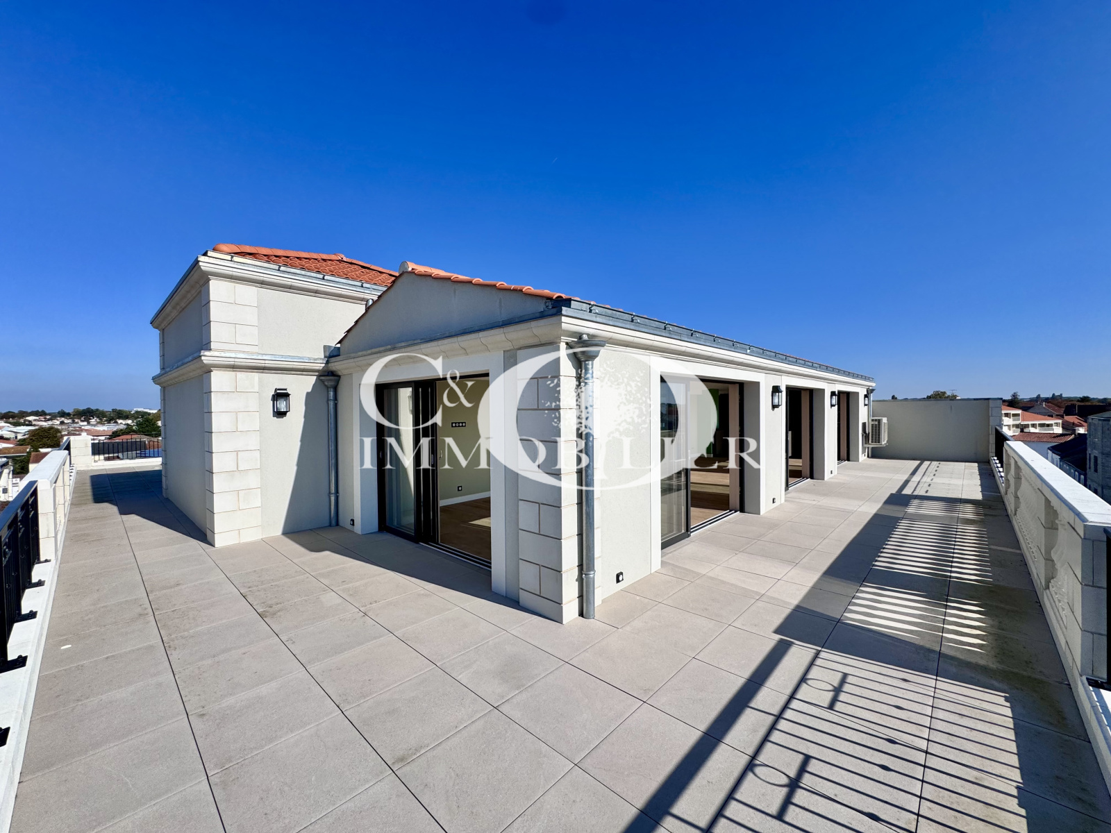 Atout rare : une terrasse exceptionnelle de 130 m², offrant une vue panoramique sur Challans. Des matériaux de qualité exceptionnelle ont été utilisés pour réaliser ce bien.
