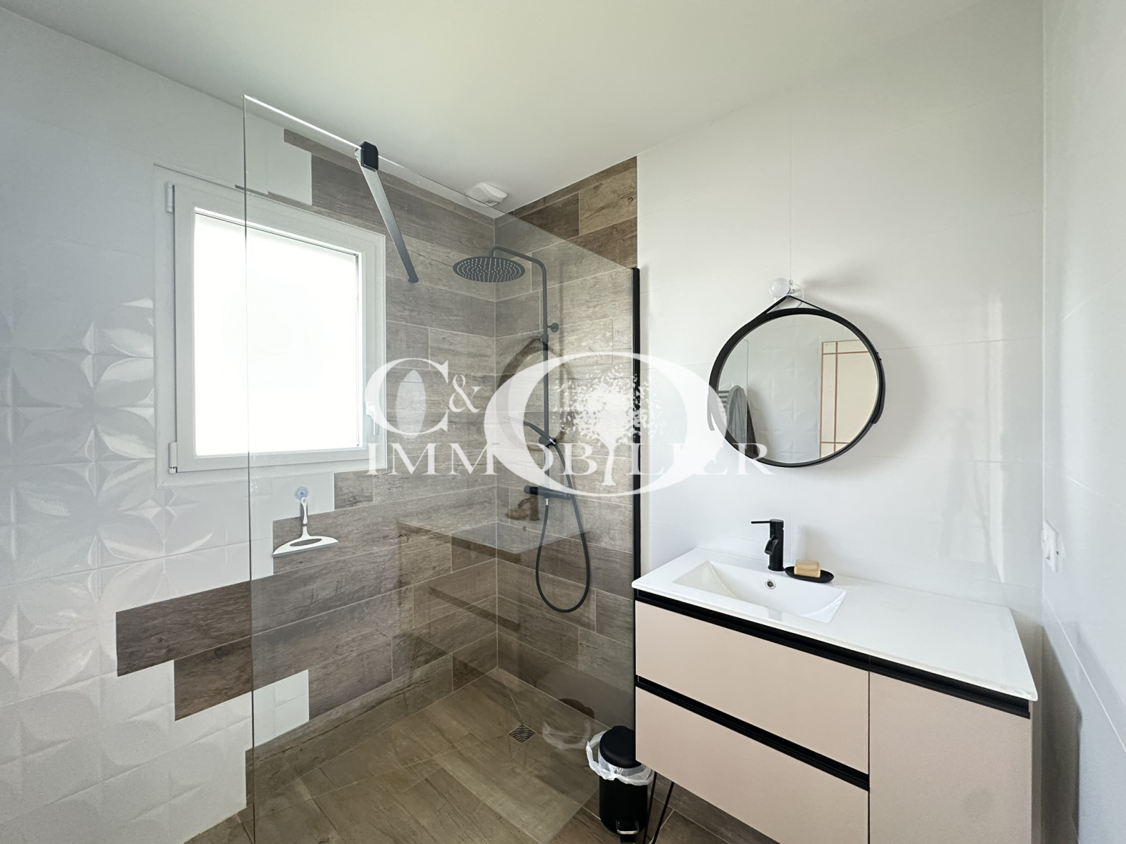 - Les atouts : construction récente avec des matériaux de qualité, un chauffage au sol par aérothermie et une terrasse bois exposée sud-ouest.
